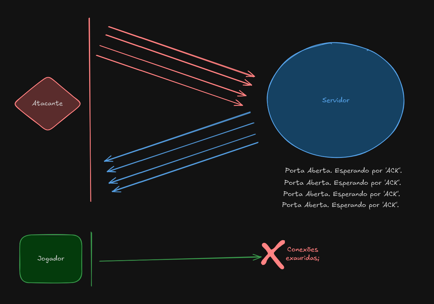 Mas essa defesa não é impenetrável, às vezes, dependendo do tamanho do ataque, ele vai vazar e acabar afetando a experiência dos jogadores independente dos nossos esforços para proteger o servidor.